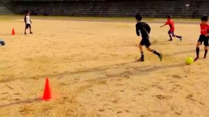 練習の効果 ファーストタッチでのコントロール能力+パスの精度 練習手順 対面パスをマーカーの間を通して行う。その中でファーストタッチのバリエーションを変える バックステップを入れてダイレクト インサイドで内側にボールをコ…