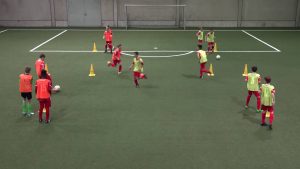 練習の効果 ボールコントロール ポジショニング プレッシング 練習手順 マーカーで15m×20m程度のグリッドを作ります 2人のサーバーは短い辺のグリッドに立ちます 残りの4人は2チームに分かれてグリッドの中…