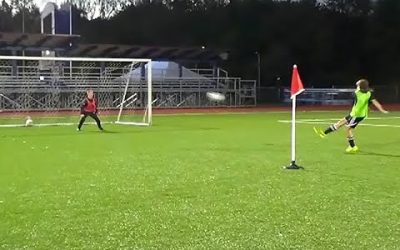 練習の効果 ドリブルシュート技術の向上 ゴール手前のクリア技術練習 練習手順 フラッグ(無ければコーンでも代用可)を3個用意する(便宜上それぞれフラッグA・B・Cと定義する) 動画では明確なフラッグ位置への記述が無いため…