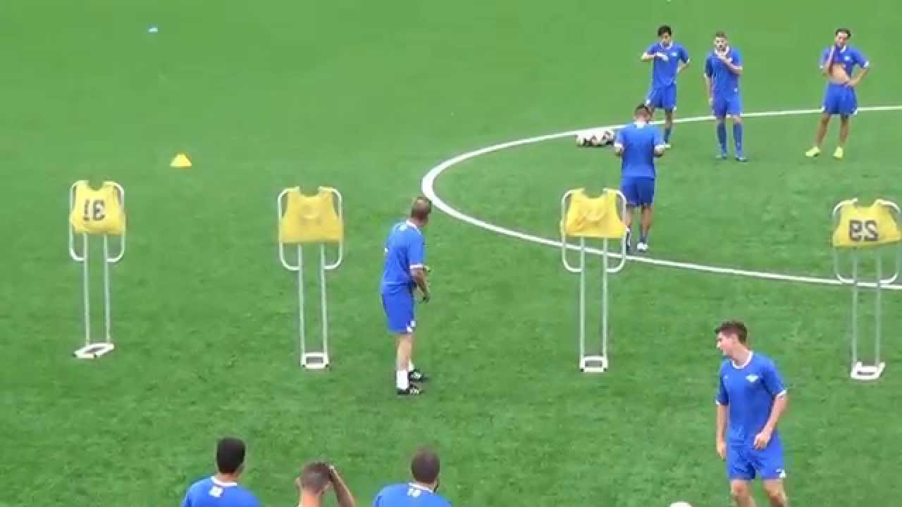 ポールの間でボールを受けてターンしてパス