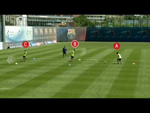AからBにパスをあて、BがダイレクトでAに返した後にBは左右どちらかに動く