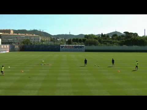 2人組で距離を25mほどあけてロングパスをする。ワントラップした次のタッチで蹴れるようにする