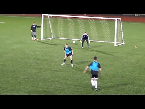 ゴールを1つ設置しそこから25mほど離れた場所に3つ(真ん中、右サイド、左サイド)に間隔を15mほどあけてマーカーを置く