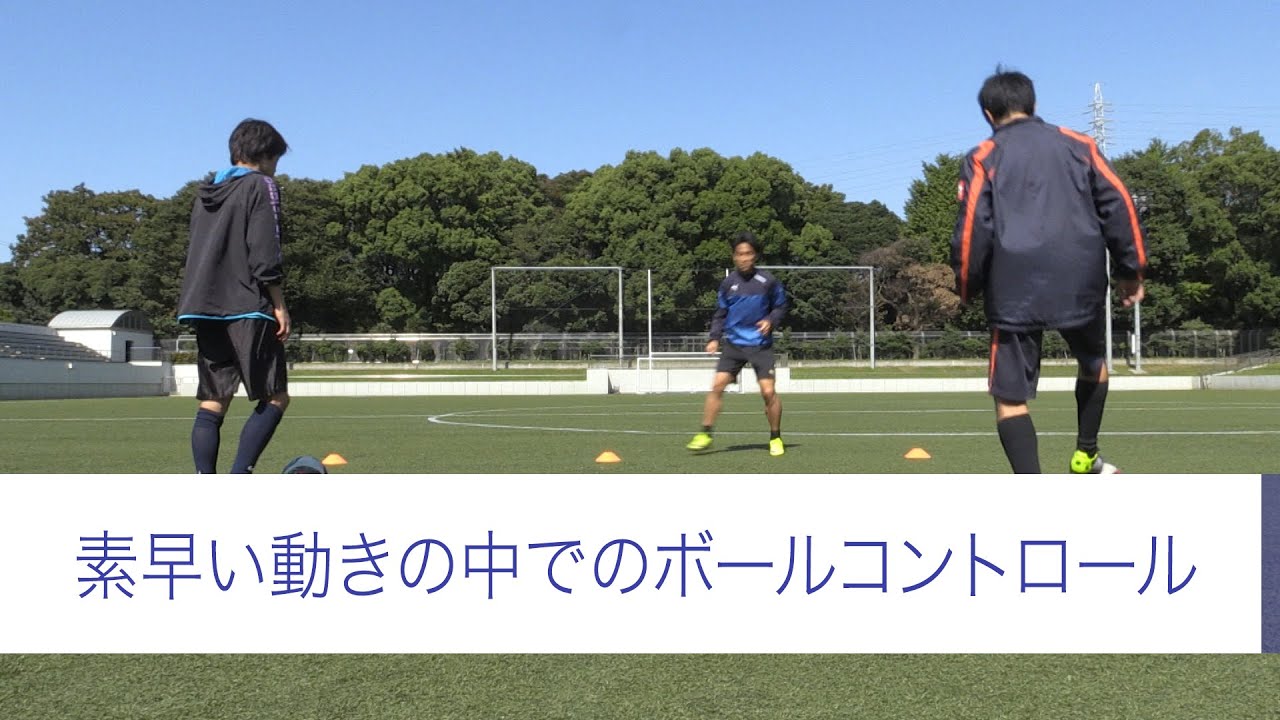 次にもう一つのコーンに向かっては走り、同じくボールを受け取ったら反対側にトラップして返す