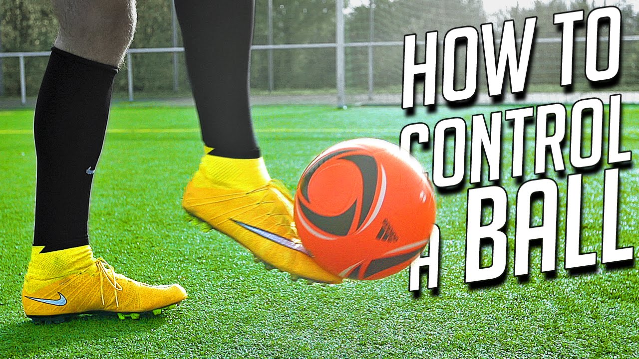 インステップのトラップ:膝の角度を90度に曲げ、ボールはつま先と足の甲の間で触るように意識する。