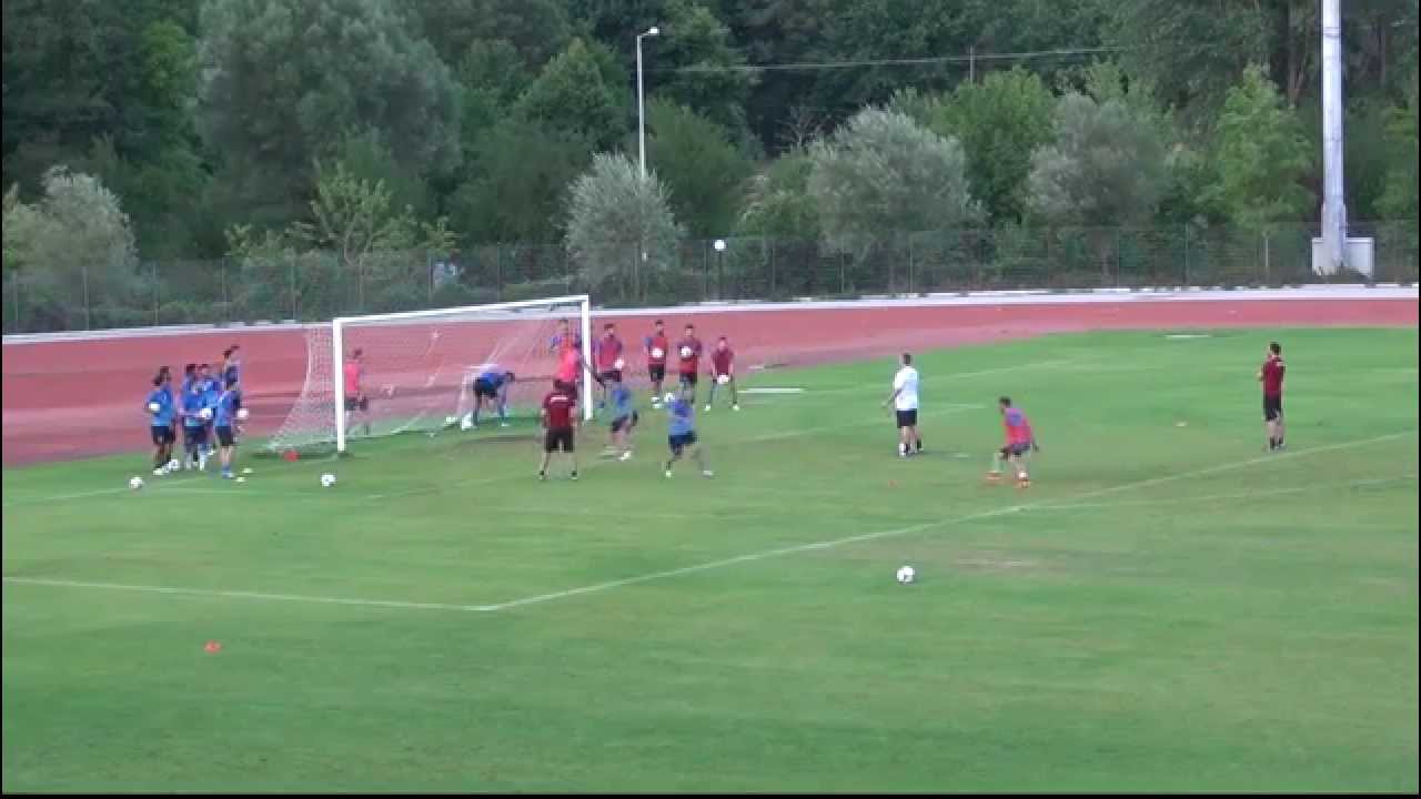 走りながらヘッドしてゴールを狙うのがメインの練習です。色々な動作を行う練習でもあるため、ウォーミングアップにも有効です。やることが多いので、慣れるまではちぐはぐになるかもしれません。また、普段キーパー練習をしないフィールドプレーヤーがセーブ練習することで、ヘディングシュートするときの相手心理を掴む効果がある他、予想外にキーパー適性がある選手を見つけるかもしれませんね。