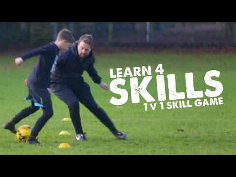 距離10mのマーカー中でプレイヤーはフェイントを駆使し、ディフェンダーを抜きされるか、ディフェンダーはフェイントにつられずついていきボールをカットできるかがポイントです。この動画をみると、フェイントはアイデアとユーモアにあふれています。基本的なフェイントを覚えたら、ゲームを開始し練習というより友達と遊ぶ間隔でやってみましょう。なにがフェイントになるか、遊びの中で試して理解していきましょう。