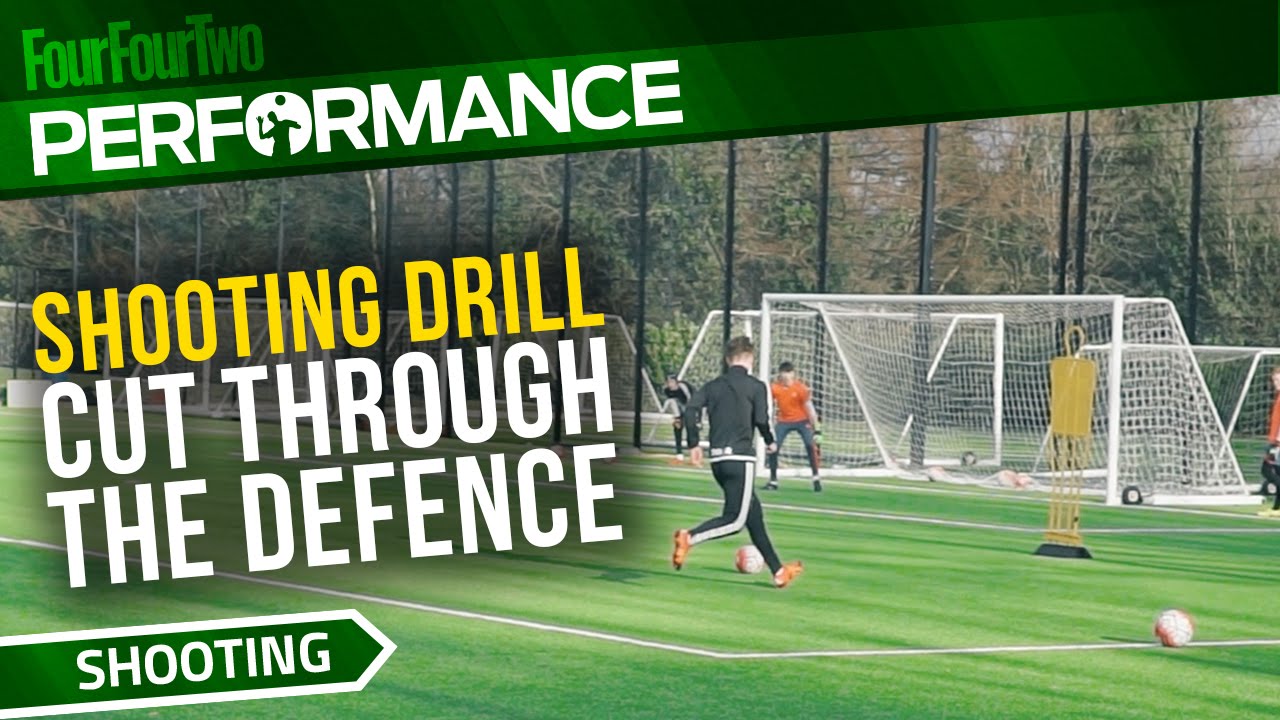 ワンツーで一人がマネキンの裏へ抜け出し、ファーストタッチでシュートする