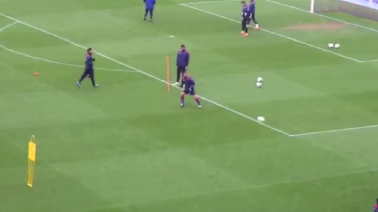 まずはパス交換の確認で、走りながら前進する大外の交換から楔役を経由してパス交換する