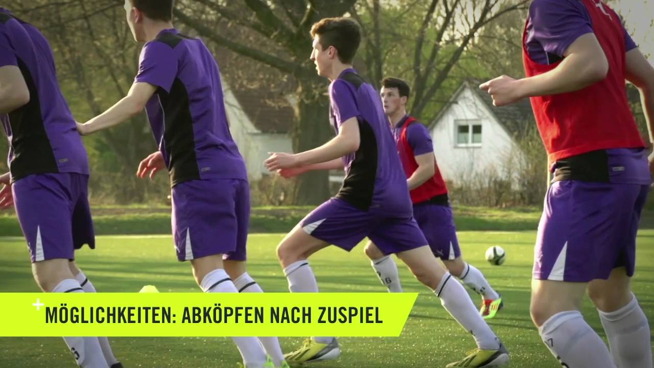 外側の選手はボールをパスしながらヘディングで選手の4人を当てます