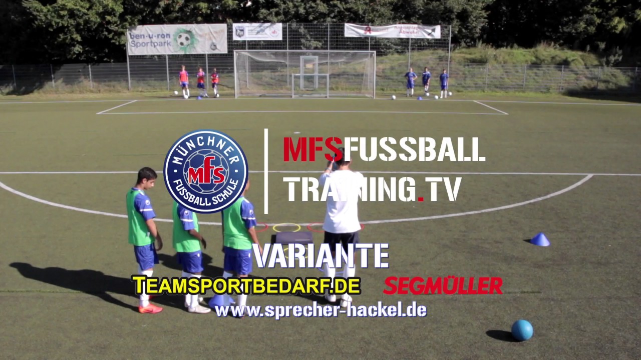 対面からパスされるボールを片足ずつシュートしてスタート位置に戻る