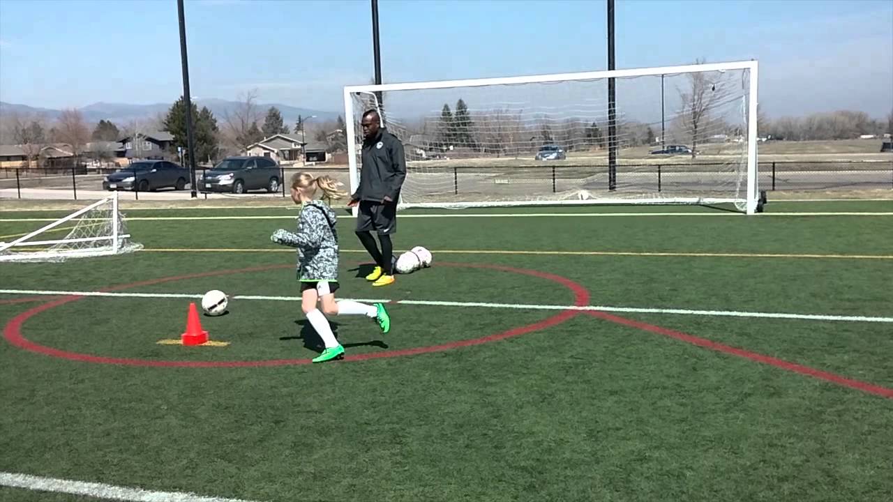 プレーヤーは、ときにはボールを跨いで持ちだしてコーチがいる位置へ移動し、パスを返す