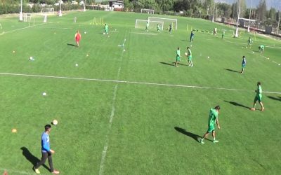 練習の効果 俊敏性を高めます 直線の速さを向上させます 練習手順 4色のマーカーを四角形に並べたものを人数分用意し、それぞれの四角の直線上にミニゴールを置く ゴールから少しそれた横側にも左右両方にマーカーを並べる 選手は…