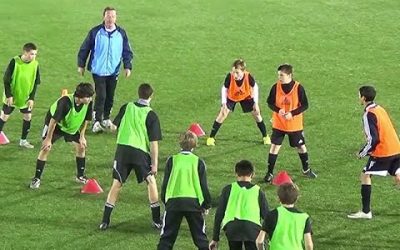 練習の効果 アジリティー能力の向上 反応スピードの向上(メニューは0:40からです) 練習手順 2チームに分けてペアを決め、それぞれ違う色のビブスを着る お互い向き合って2列に並ばせ、3m幅をあける。左右10m先にマーカ…