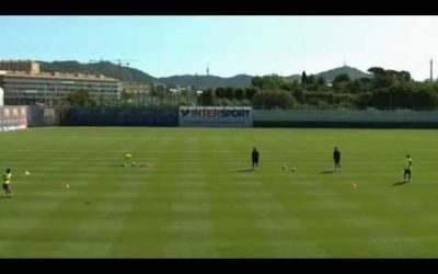 【バルセロナ】4人1組でボールを2つ使ったドリルメニュー!