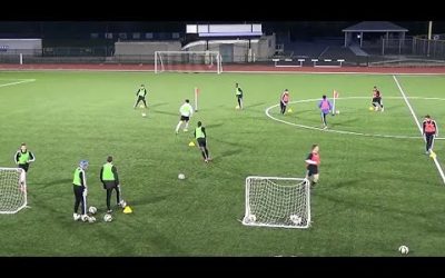 練習の効果 ゴール前の動き シュート エリア内での攻防 練習手順 ペナルティエリアから15mほど離れた場所に1人攻撃の選手、ペナルティエリアには2対2、またキーパーも付ける 動画のようにパスを出して3対2をスタートして、…