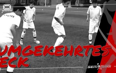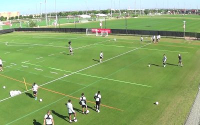 練習の効果 パスワークの向上 攻撃の組み立てパターンを養う 練習手順 30m×20mほどのエリアを準備して角にマーカーを並べる 横の20mラインを半分に区切るように中央にもラインを引く(端にマーカー設置) プ…