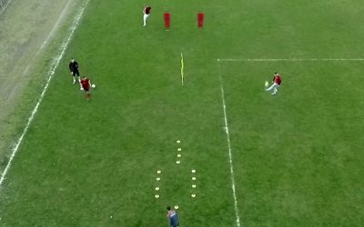 練習の効果 ・アジリティ ・コーディネーション ・有酸素能力 練習手順 コーンを横向きにステップする 左右からのパスをダイレクトで返す 正面からのパスをワントラップしてシュートする 練習のポイント アジリティとコーディネ…