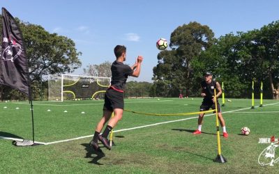 練習の効果 スピード、アジリティ、スタミナ 練習手順 マーカーを約4×4メートルおきに正方形の形で4個並べる 各マーカーに番号を振り言われた番号のマーカーに素早く動く 言われた番号のマーカーに素早く動き、ボールをヘディン…