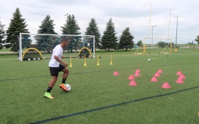 練習の効果 ・運ぶドリブル ・フェイント ・間合い 練習手順 動画のように三角形に障害物を置く 障害物をフェイントで交わしてから回り次の障害物へ仕掛ける 3つ交わして元の位置へ戻る 練習のポイント ボールと自分との距離を…