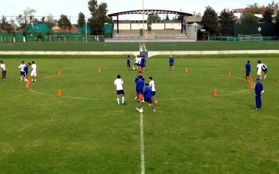 練習の効果 ライン守備の戦術・スキル向上 ライン間を抜くパススキル向上 練習手順 フラッグとマーカーそれぞれ4個を使ってタテ20m×ヨコ30mのエリアを作る ヨコ30mを10mずつ区切るように、マーカー4個を…