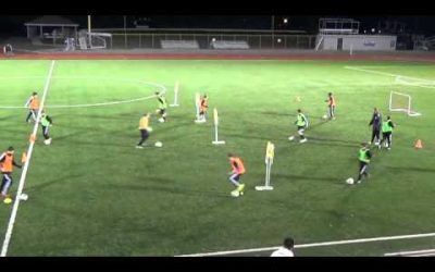 練習の効果 アジリティの向上 反射神経を鍛える 練習手順 センターサークル上にアナログ時計のようにコーンを12個並べる プレーヤーを4チームに分けて3・6・9・12時の位置に並べる コーチはそれぞれのチームに行き先となる…