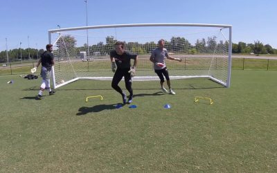 練習の効果 ・アジリティ ・コーディネーション ・有酸素能力 練習手順 コーンを横向きにステップする 左右からのパスをダイレクトで返す 正面からのパスをワントラップしてシュートする 練習のポイント アジリティとコーディネ…
