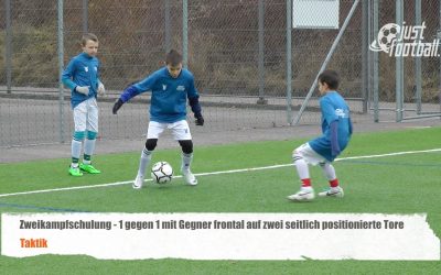 練習の効果 相手との駆け引きが身につきます ボールコントロールの技術を向上させます 練習手順 ミニゴールを背中合わせでコートの中心に置く ゴールを挟んだ2箇所に選手が並び、片方がパスをしてスタート パスを受けた選手はゴー…