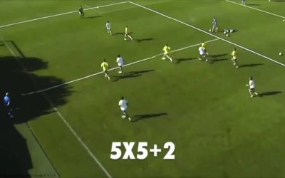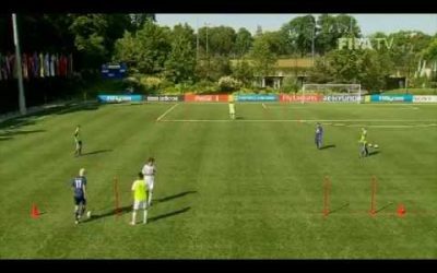 練習の効果 パス&コントロール サポート パス&ムーブ 練習手順 15×15のグリッドを作り、動画のように3m四方ほどのボックスを2つ作る グリッド内は3vs3、ボックス内にフリーマンが一人ずつ入る …