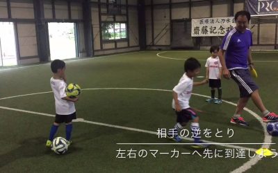 練習の効果 ドリブル ボールコントロール 練習手順 マーカーを10M間隔で2つ置きます 選手は2人、1人はボールを持ちます ボールを持っている人はフェイントをかけながら相手のいない方へ進みます ボールを持っていない人は相…