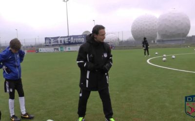 練習の効果 ボールコントロール シュート 練習手順 DFとOFが対面に立ちます DFがOFに向かってパスを出すとともにプレスをかけます OFは相手の勢いを逆手に取りファーストタッチでボールをスペースに出します (DFは少…